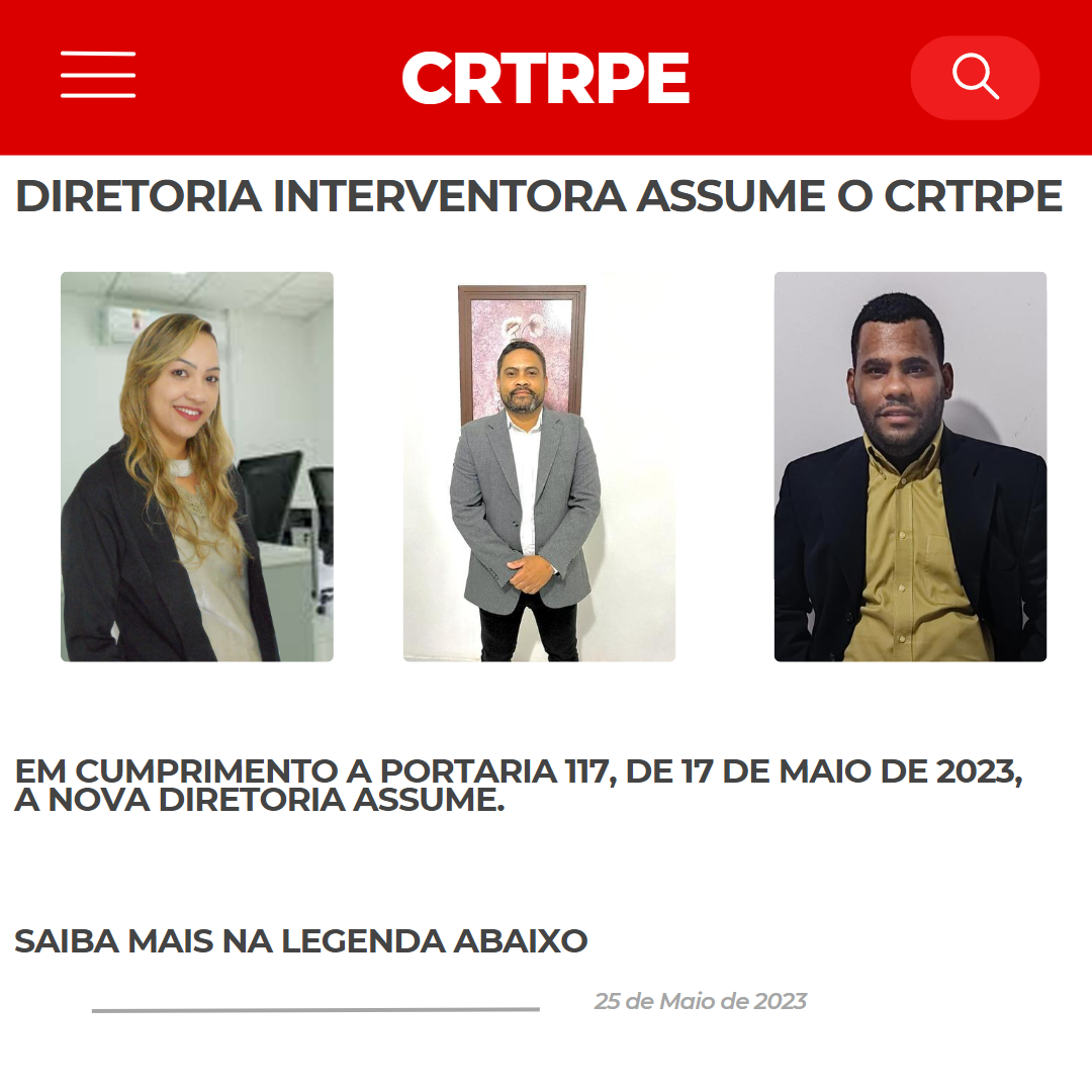 Diretoria Interventora Assume no CRTRPE – Por determinação do Conter